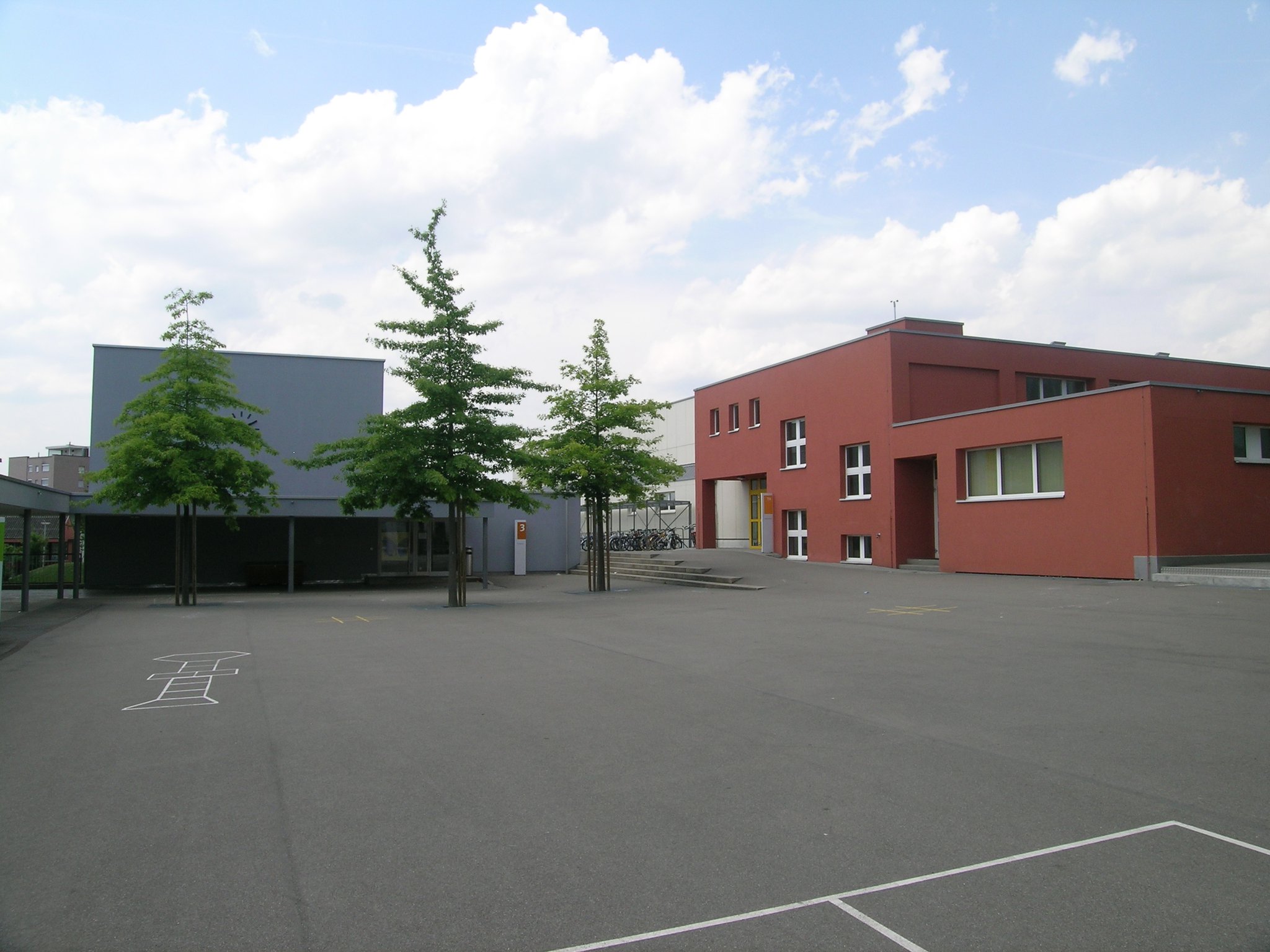 Die 3fach Turnhalle verfügt über eine Zuschauergalerie sowie ein kleines Office. Es stehen bis zu 6 Garderoben zur Verfügung. Die Turnhallen werden nur an Sportvereine vermietet!